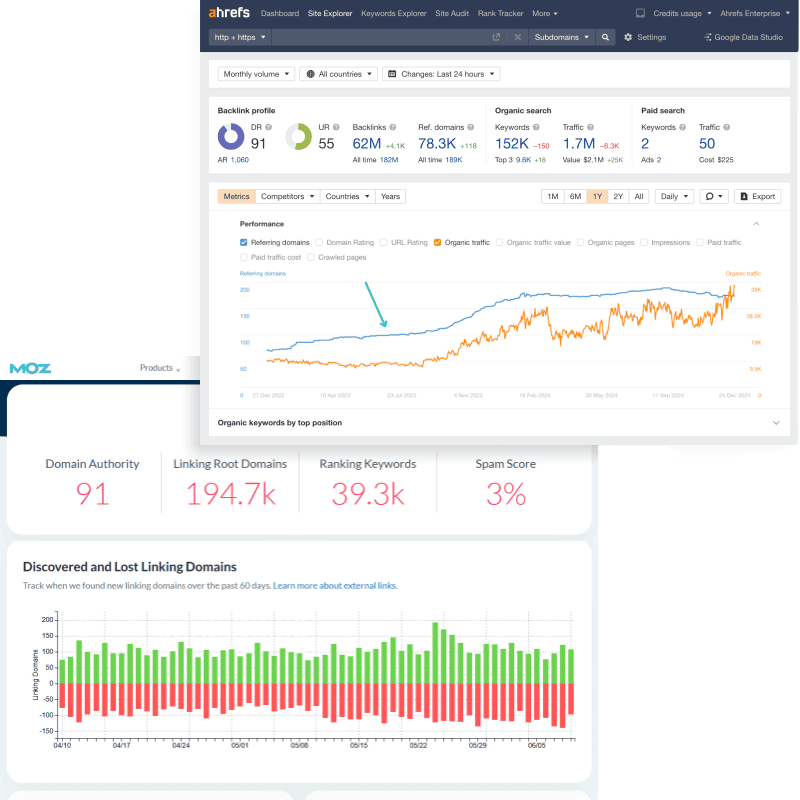 Every backlink we build is placed on websites with an average Domain Authority (DA) of 50+ and Domain Rating (DR) of 50+ or higher. We partner only with high-quality, trusted sites to ensure your SEO gains are genuine, reliable, and long-lasting.
